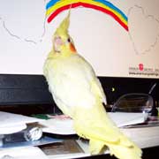 intelligent bird and a very fast learner. If you ask him for a kiss he gives it to