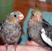 has sent me so many pictures of her beautiful birds. Here are her babies. They are cockatiels (of course)
