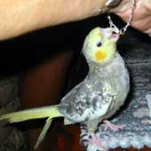 Christine is the proud owner of Buddy, a very vocal cockatiel.