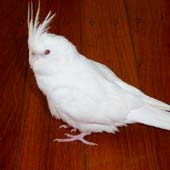Frosty is an Albino cockatiel and belongs to Catherine. Catherine, who lives in