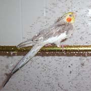 Helena sent us this marvelous picture of her bird Luke enjoying a shower!