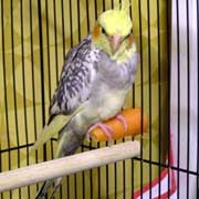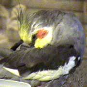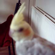 This is a photograph of Chico, one of Anna's 4 cockatiels. Pictures of the other 3,