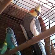 to buy a parakeet. The parakeets and the cockatiels were playing