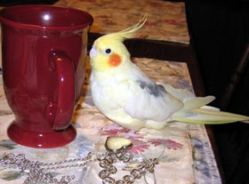 bird in it! When mommy tries to pick up that mug for a drink, I'll bite her! She