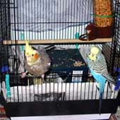 These darlings are named Sparky, the cockatiel, and Buddy, the parakeet. Sparky was